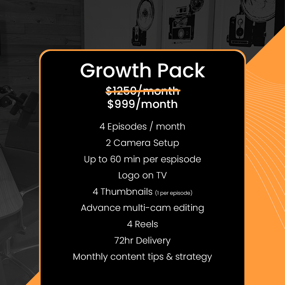 Launch Your Podcast with Studio-Quality Video & Audio We take care of the lights, cameras, and editing. You just show up and speak Choose your plan Book Your Call Book Your Call